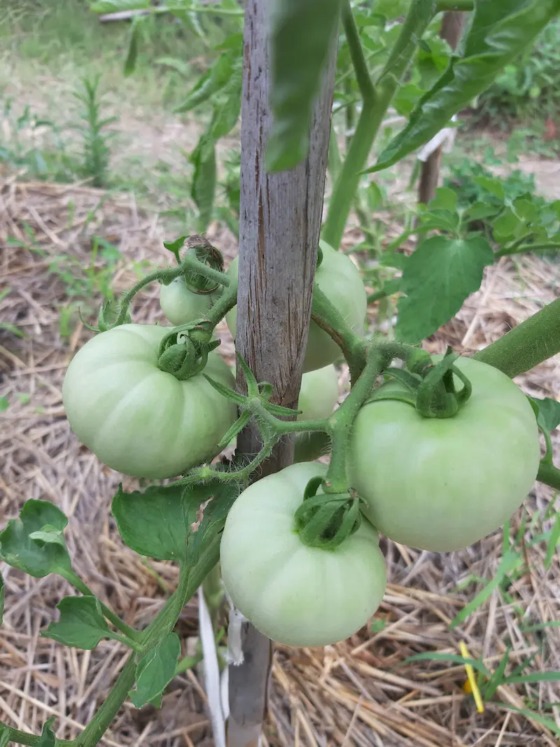 Graines maison. Semis en mars sous petit tunnel, en pleine terre. Repiquage en godet au stade cotylédons étalés/début des premières vraies feuilles. Plantation mi-mai, avec engrais (3 poignées).